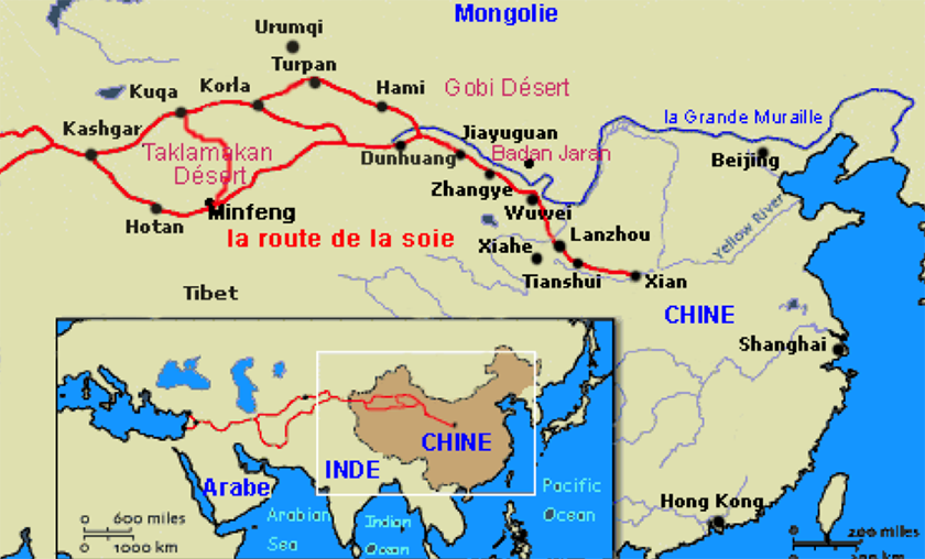 Transfert en train pour Duhuang en matinée. Découverte des immenses dunes de sables à la lisière du désert, temps libre. Nuit à l’hôtel à Dunhuang